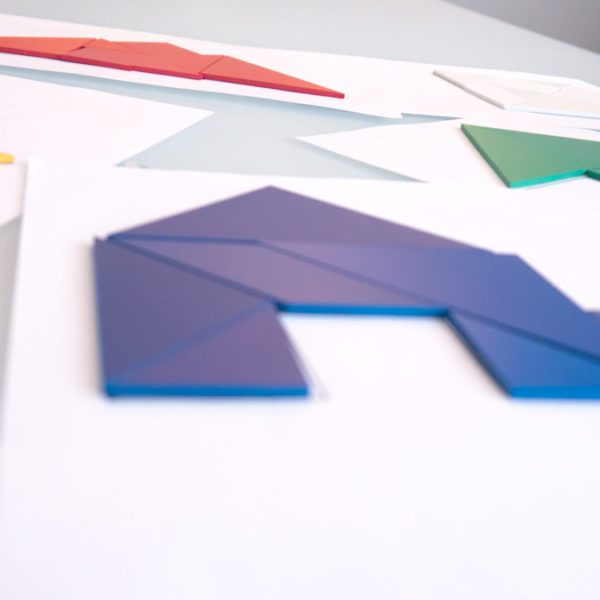 Das Spiel besteht aus 5 Tangrams mit jeweils 7 geometrischen Formen.